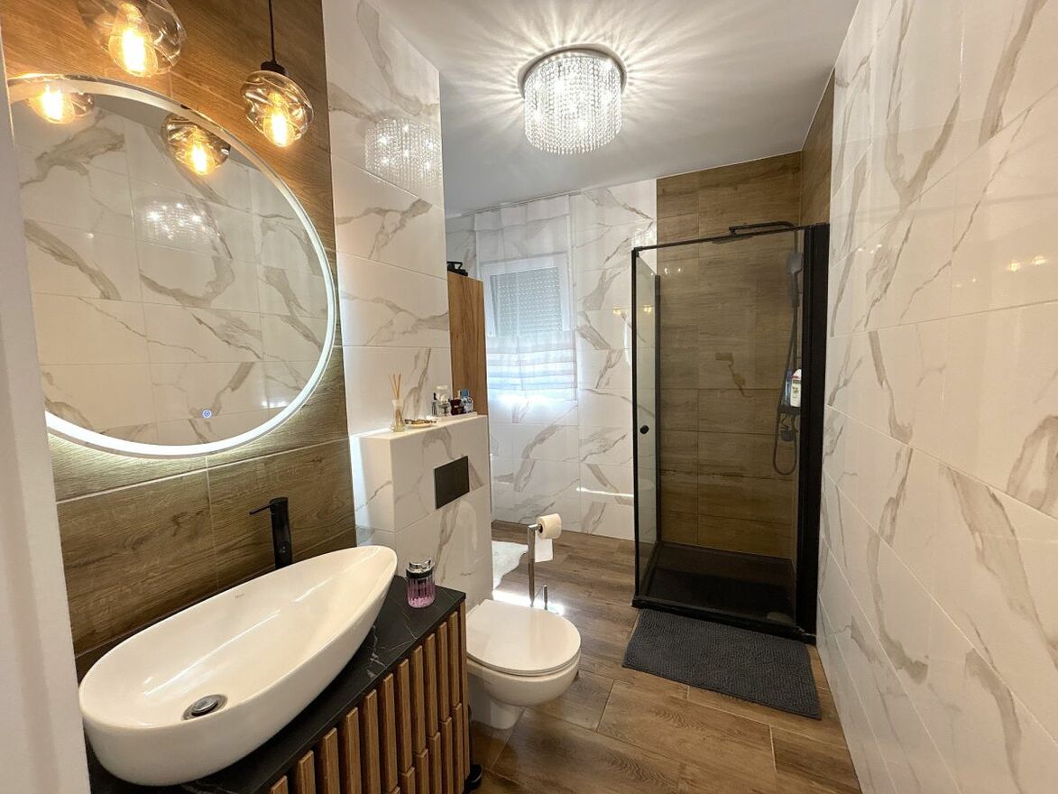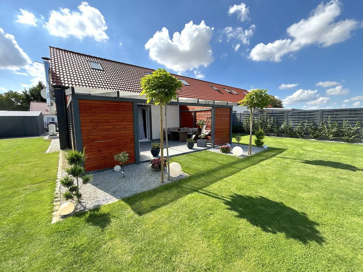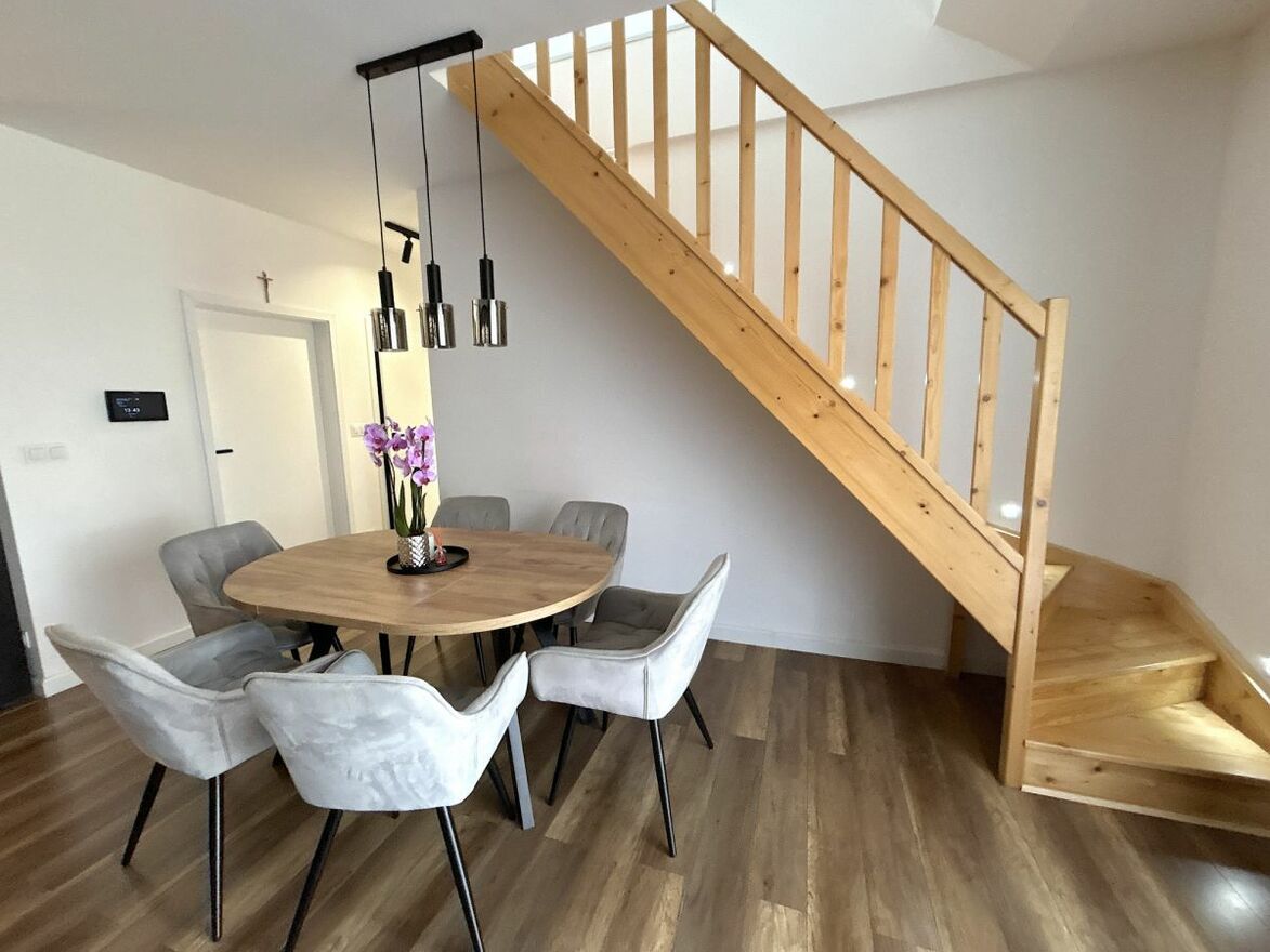 Na sprzedaż dom w zabudowie bliźniaczej o powierzchni 155 m2 z dużym ogrodem.Rok budowy 2023 ogród został zorganizowany w tym roku. Zbudowany z porotermu, ocieplenie styropian 20 cm oraz dachówka ceramiczna. Powierzchnia parteru to 99m2 i 56m2 na piętrze. Dom został wykończony w wysokim standardzie, a na część sprzętów jest jeszcze gwarancja. Nieruchomość składa się z dużego salonu z jadalnią z wyjściem na taras, kuchni, łazienki, toalety oraz kotłowni i 3 sypialni, na piętrze są 2 sypialnie.