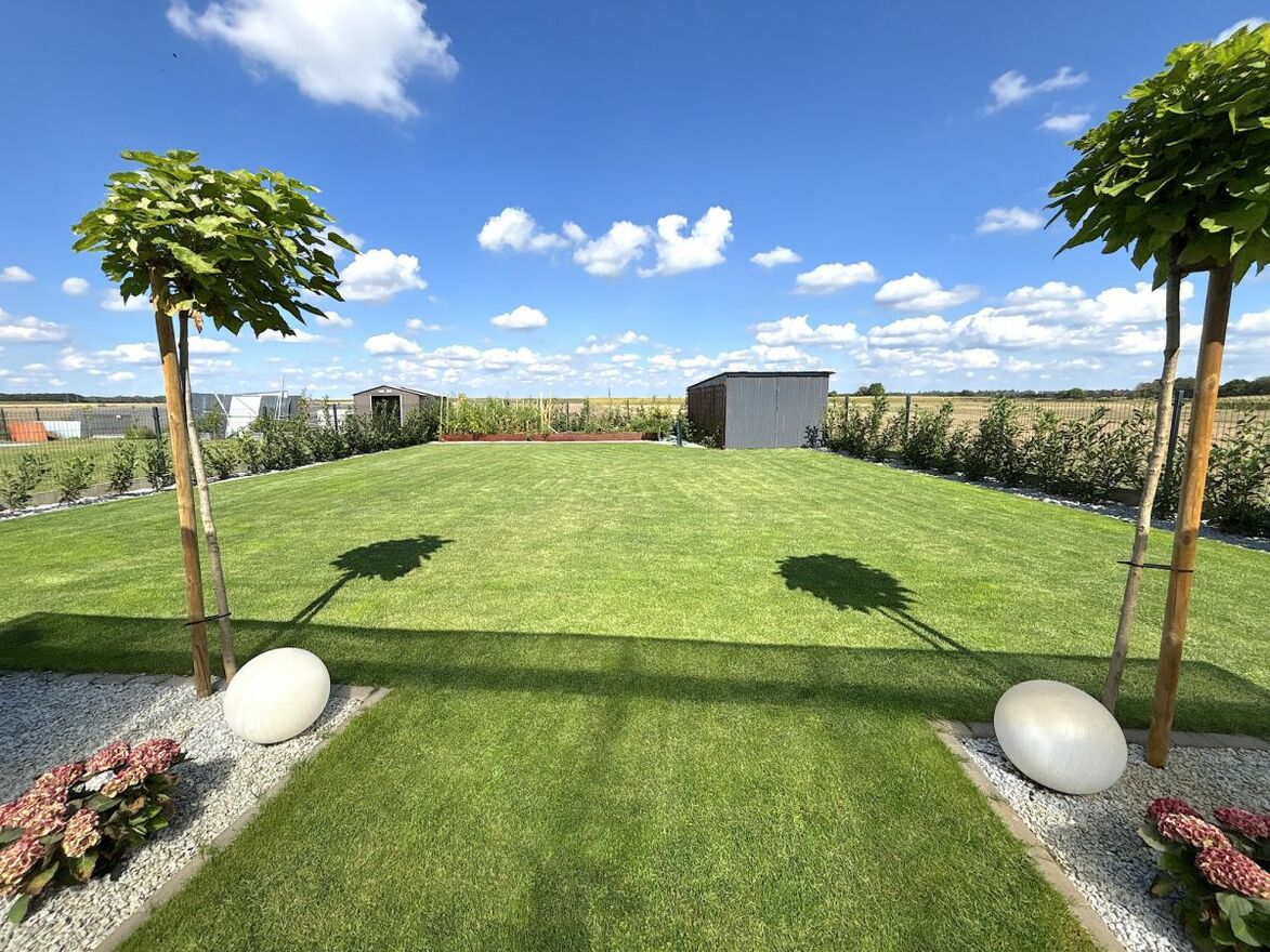 Ogród jest dobrze zorganizowany, właściciel dba o niego, jest system nawodnienia oraz zraszaczy, jest tez robot do koszenia. System nawodnienia jest zautomatyzowany, połączony z prognozą pogody i sprawdzający wilgotność gleby i otoczenia, dzięki czemu rośliny są doskonale podatne. Część ogrodu zajmuje warzywniak.